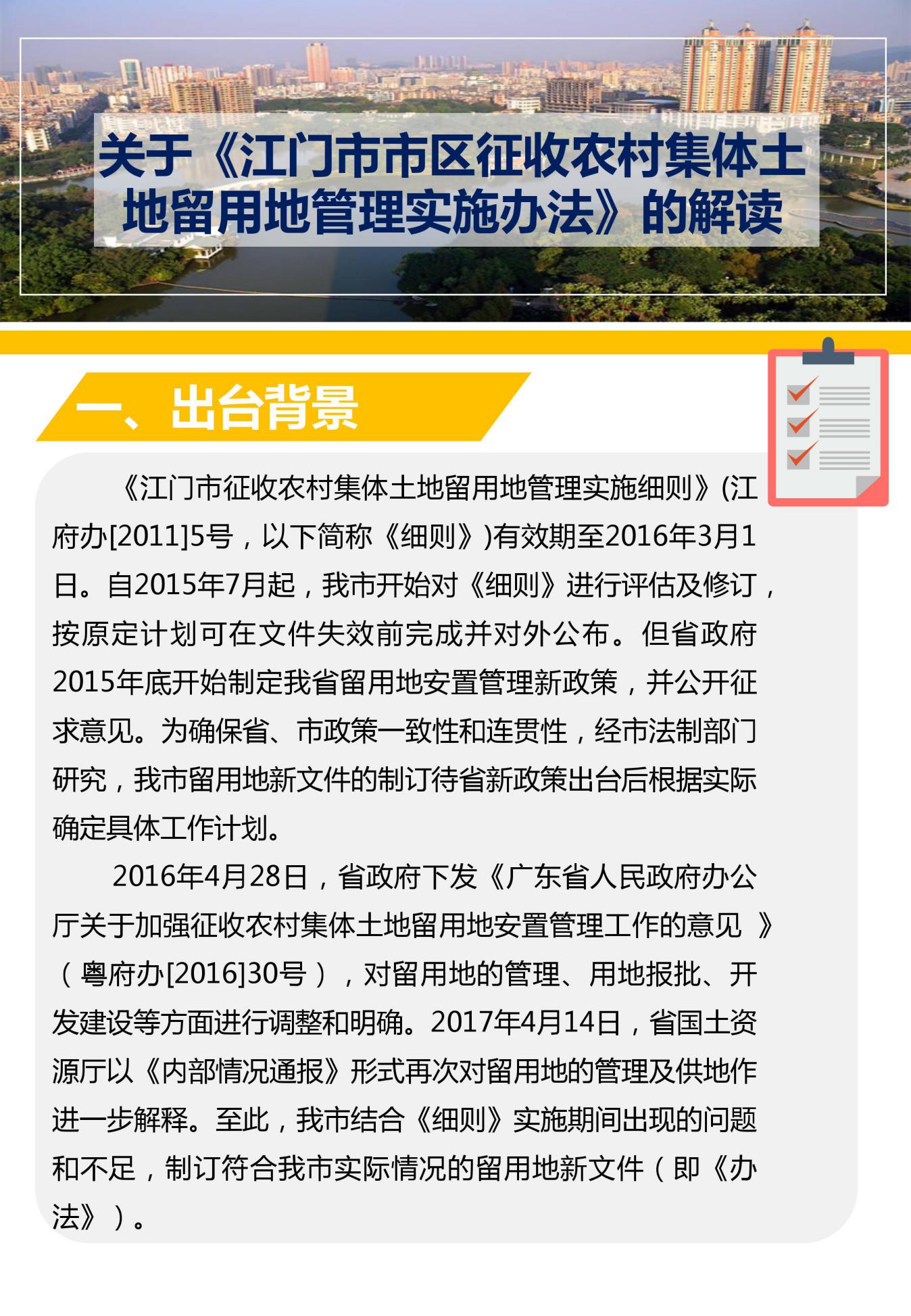 关于《江门市市区征收农村集体土地留用地管理实施办法》的解读