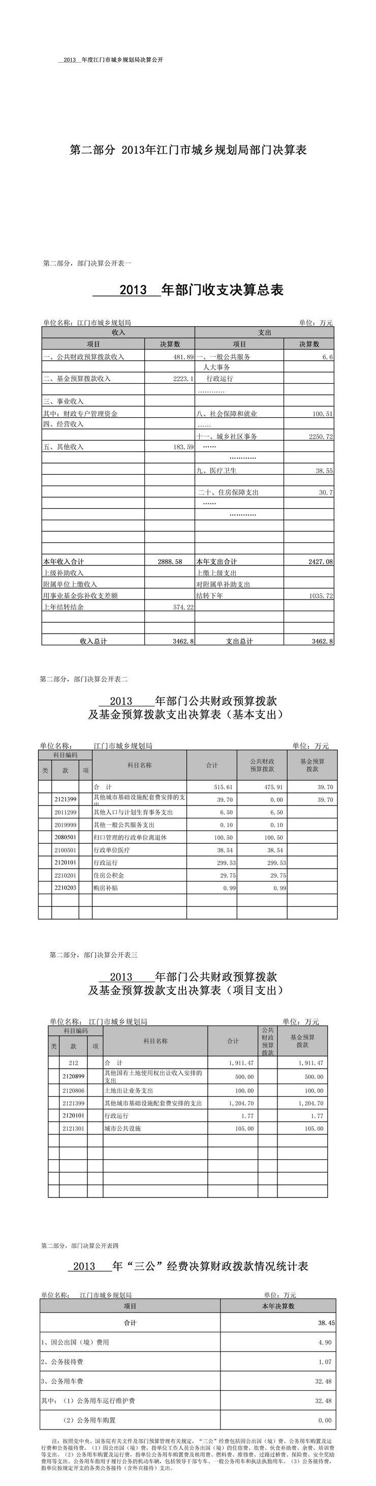 2013年江门市城乡规划局决算