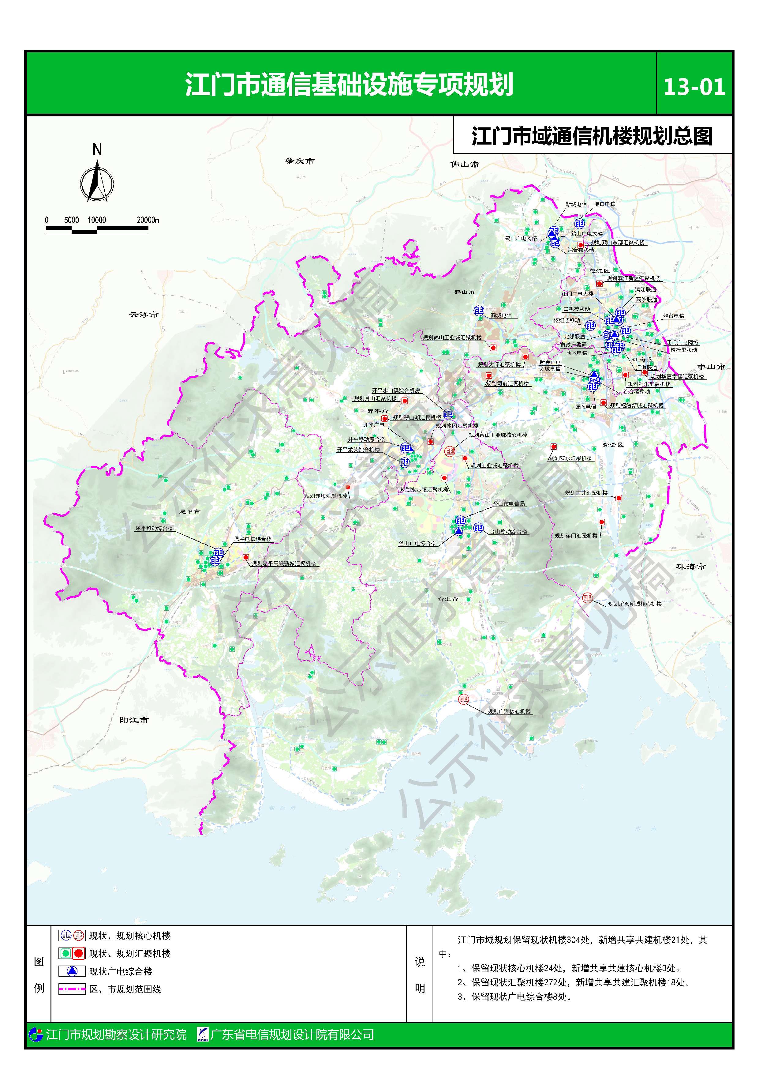 规划在江门市域范围内新建21座共建共享通信机楼: