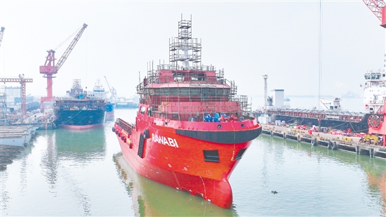 在海洋工程辅助船领域,“RAWABI”系列工作船已成为国际市场抢手货,这些船舶具备无限航区航行能力,彰显了“江门制造”的国际竞争力。