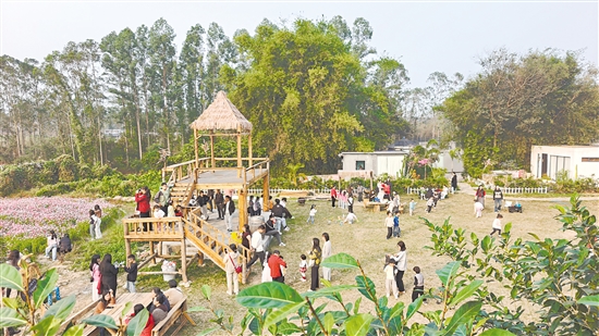 芬芳四溢的簕菜田、四季变化的田野、特色突出的民宿、热闹非凡的房车营地……作为AAA级景区,恩平市米仓村簕菜文化创意园早已成为远近闻名的网红打卡地。这张亮眼的乡村文旅名片背后,离不开五邑大学团队的深度参与。自“双百行动”开展以来,五邑大学党委高度重视,紧扣省委“1310”具体部署,以党建为引领,立足恩平发展所需,全力助推乡村规划建设与产业高质量发展。