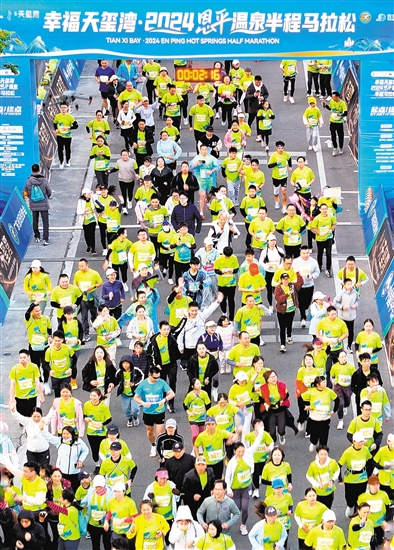 2024恩平温泉半程马拉松上,大家的脸上都洋溢着笑容。 徐卫良 摄