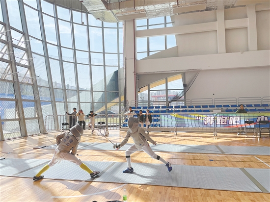 “各就各位,开始!”随着裁判的指令,身着白色击剑服的青少年选手手持剑器,在剑道上灵活走位、果断出击。弓步、格挡、刺击,一系列动作行云流水,金属剑器碰撞发出清脆声响,与场边观众的加油呐喊声交织在一起,氛围感满满。
