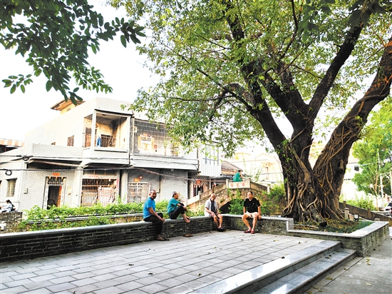 老人们在古榕树下乘凉话家常。