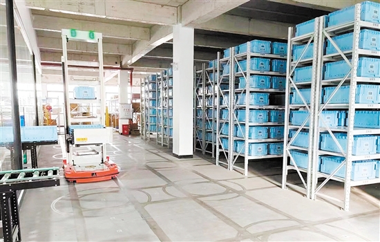 永锢电子智能仓库内,AGV智能机器人自主行驶,精准、高效完成各项作业。企业供图
