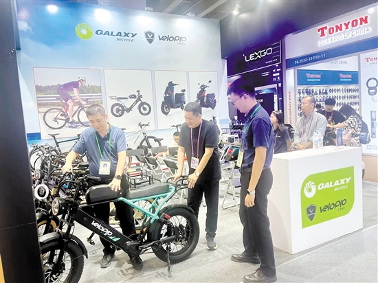 鹤山市格莱仕车业有限公司携“拳头产品”亮相本届广交会第一期展馆中平台“江门制造”展区。鹤山市格莱仕车业有限公司是一家专业研发、制造、销售电动自行车、助动车、普通自行车的企业,产品90%销往国外。今年广交会上,企业展示了一系列新研发的产品,其中,锂电山地车备受来自“自行车王国”荷兰的采购商青睐。