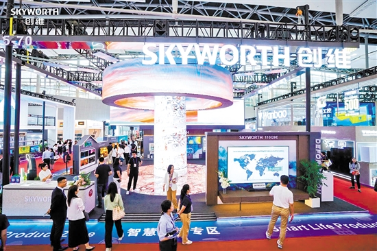 江门创维智能显示产业园带来的电视产品占据本届广交会上创维展区的“C位”。
