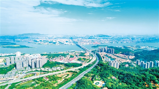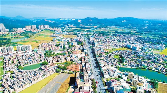 随着“三通道”的建设,江门鹤山作为珠江口西岸“桥头堡”的区位优势将进一步彰显,图为鹤山东部城区新貌。