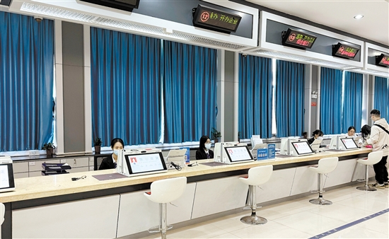 鹤山持续深化“高效办成一件事”改革,全力打造“鹤心意”政务服务品牌。图为鹤山行政服务中心大厅。