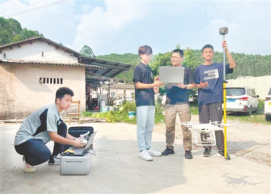 广州航海学院学生到月山镇开展“数字化三维农村模型构建”项目。