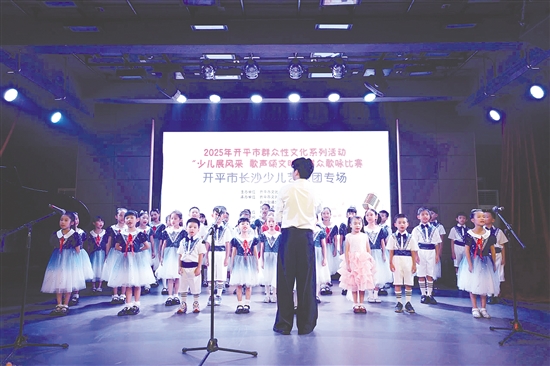 江门日报讯 (文/图 记者/李淑珩) 近日,由开平市文广旅体局主办,开平市文化馆、长沙街道党群服务中心、长沙街道新时代文明实践所承办的2025年开平市群众性文化系列活动“少儿展风采 歌声颂文明”群众歌咏比赛举行,开平市文化艺术中心二楼小剧场童声嘹亮、掌声如潮。