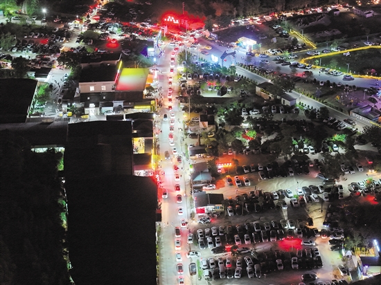来五洞村品尝牛肉的市民游客众多,村内不时形成“车龙”。