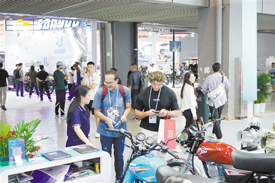 珠峰摩托展位前客商咨询忙。罗霈 摄
