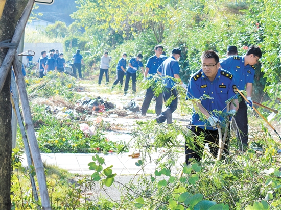 行动启动首日,区城市管理综合执法局领导带队在丰乐路省实江门学校东门段开展了杂草清理工作。