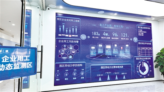 蓬江区产业园就业驿站的智驿云图系统展示了园区用工全貌。