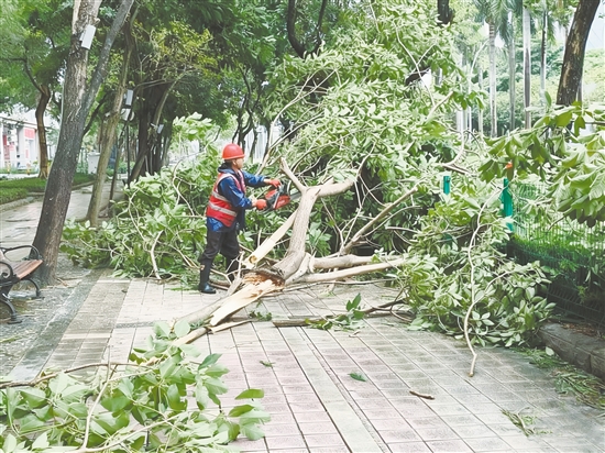“‘城管110’指挥中心呼叫园林绿化应急三队。院士路发现一棵大树被狂风刮倒,影响车辆行人通行,需立即前往处置。”“收到,绿化中心应急队预计15分钟抵达现场。”受台风影响,城区多处树木折枝、倒伏,接到险情报告后,蓬江城管工作人员按照“优先排险清障”原则,迅速携带工具到现场开展树木排险排障工作,保障道路通行安全。截至9月24日20时,城管系统共出动303名抢险人员、车辆70台,处理绿化树木倒伏、断枝253宗,保障市民安全出行。