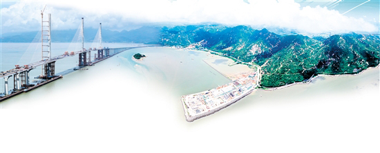 “双通道”时代即将到来,将为江门台山打开通往更广阔天地的大门。(左图) 台山市委宣传部供图 大广海湾建设如火如荼。(右图) 郭永乐 摄