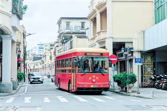 在江门台山台城历史文化街区的骑楼街道上,仿古“铛铛车”——漫途·台城观光巴士专线不断穿梭。这是不久前,江门台山斥资约200万元精心打造的旅游体验新项目。观光巴士专线串联了台山市华侨文化博物馆、台山中心图书馆、台山历史文化街区、桂水村等众多台城街道的地标,将江门台山的侨乡特色和深厚的人文底蕴展现得淋漓尽致。车辆到站时,还会发出“铛铛铛”的声音,让人如同穿越回到百年前。