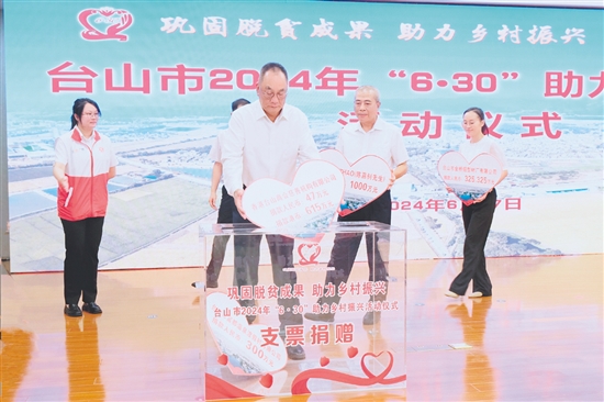 台山市是一座爱心之城、文明之城。早在6月21日,郑劲龙等台山市四套班子领导已带头捐款,积极响应“6·30”助力乡村振兴募捐活动,以实际行动动员全市广大干部群众、企业团体、爱心人士、海内外乡亲踊跃参与“6·30”助力乡村振兴活动。今年以来,台山全市已累计募集善款5500余万元。