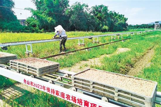 江门日报讯 (文/图 记者/陈方欢) 当前,台山晚造水稻育秧工作正在如火如荼进行中。今年,台山市在推动农业现代化进程上迈出了坚实一步,机械化育秧工作取得了显著成效。目前,台山全市已建成4个水稻集中育秧中心,所培育的优质秧苗预计可满足超过666.67公顷(1万亩)稻田种植需求,为晚造水稻丰收奠定了坚实基础。