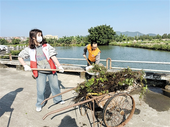 四九镇则创新活动形式,引入青年志愿者力量,以艺术形式提升乡村风貌,通过多种形式的村庄清洁和环保宣传活动,激发群众爱护人居环境的热情。其中,东冠村组织开展“艺术亮化环境”活动,召集农村党员、大学生志愿者在村道墙壁上绘制生态环境主题宣传海报,点缀和美乡村。来自广州南方学院的15名大学生志愿者共绘制了20余幅墙绘,成为村里一道独特的风景线。大学生志愿者蔡健鸿表示,四九镇生态环境优美,乡风文明淳朴,能为当地的和美乡村建设出力,感觉非常有意义。