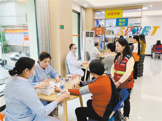 依托社区“大党委”成员单位、卫生医疗系统单位等力量,环南社区党委结合二十四节气,推出系列银龄健康关爱服务活动,至今已开展三伏天送药贴、正骨养生讲座、老年人慢性呼吸宣讲等11场送健康活动。同时,结合银龄群体的年龄、行动便利、基础病类别等具体情况,联合医护人员上门送基础性体检服务近10次。