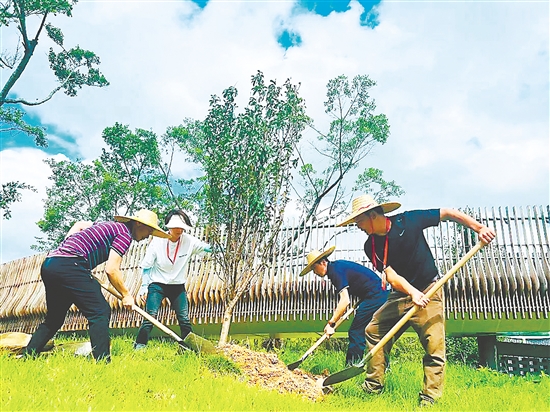 江门日报讯 (文/图 记者/钟珍玲) 为积极响应绿美广东生态建设号召,提升公众生态环保意识,日前,小鸟天堂国家湿地公园携手会城街道人大代表,在公园内开展“互联网+全民义务植树”基地造林绿化尽责活动。活动中,人大代表带头示范,通过劳动尽责的方式,在公园内种下40多株桃花树苗,为提升湿地绿化品质、改善生态环境贡献力量。