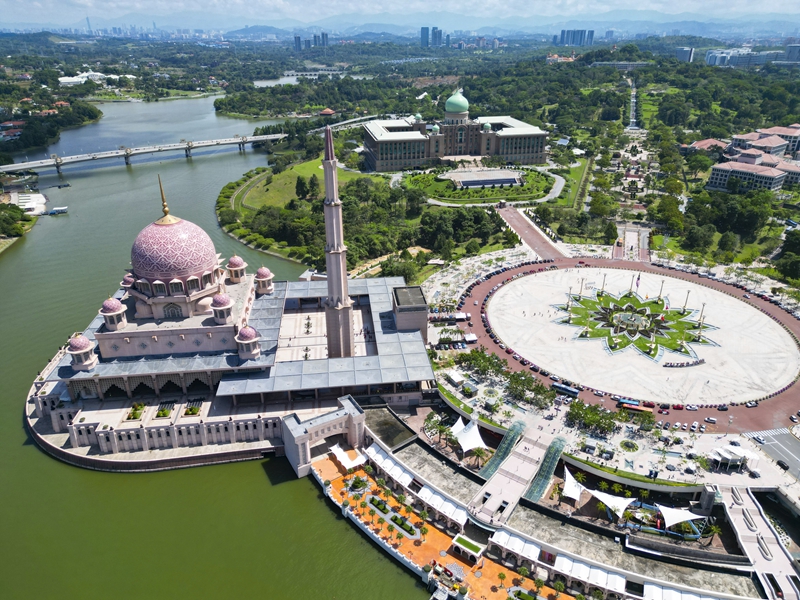 这是2025年3月18日拍摄的马来西亚行政首都布特拉贾亚景色(无人机照片)。新华社记者 程一恒 摄