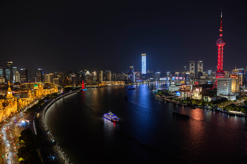 上海陆家嘴、外滩、北外滩夜景(2025年4月30日摄)。新华社记者 王翔 摄