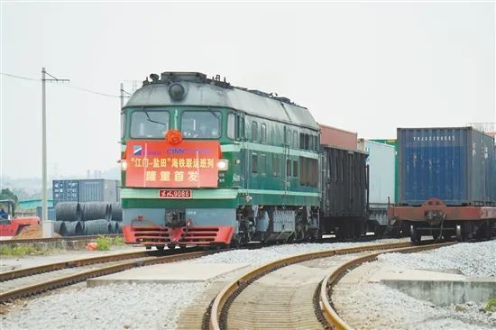 昨日中午13时,由中集现代物流旗下深圳中集优拼科技有限公司(以下简称“中集优拼”)与盐田港集团下属深圳平盐海铁联运有限公司共同组织的广珠铁路江门站—盐田港海铁联运班列在广珠铁路江门站货场正式首发,首发班列运送的货物包括家居用品、生活用品、金属制件等产品。