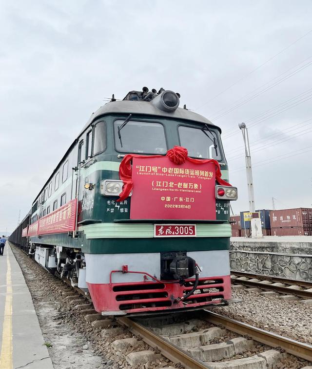 3月16日上午,广东江门开行的首趟中老国际联运班列“江门—磨憨—万象南(塔纳棱陆港)”中老班列从广东江门北站首发,经广珠铁路、广茂铁路、河茂铁路、南昆铁路到云南昆明,于20日17时45分许通过云南磨憨口岸出境。