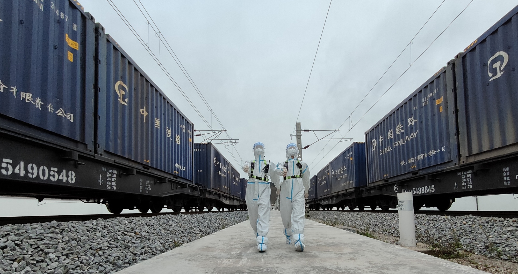 磨憨铁路口岸执勤队民警按照“两头向中间”的查验模式对列车车体开始检查,后台视频监控人员通过5T列车边检智能查验系统对列车车底、两侧、车顶等部分进行全方位的检查,仅用30分钟,助力“江门号”快速通关。