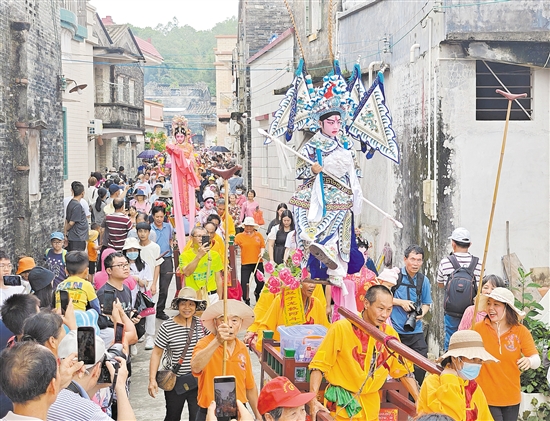 业内人士建议把台山浮石村飘色搬到江门市区,扩大市场影响力。郭永乐 摄