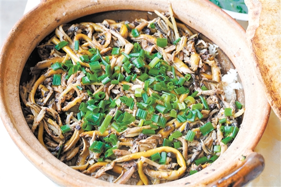 台山黄鳝饭是台山历史悠久的特色名扬菜。正宗的台山黄鳝饭中,鳝与米的分量比例恰到好处,鳝的肉与骨分离,骨一般另用于煲汤,黄鳝饭的饭油而不腻、干湿适中、软硬有度、鳝香四溢。