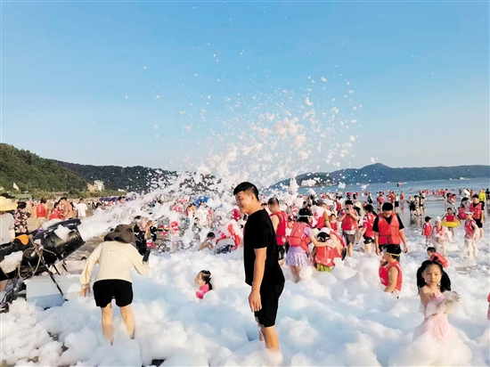川山群岛旅游度假区开展泡泡浴等活动,成功吸引众多游客。