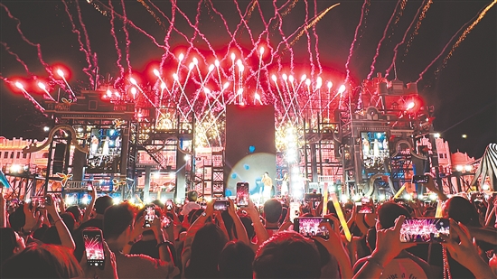 这个暑假,在赤坎华侨古镇,夜幕降临时分,绚烂焰火与潭江波光交相辉映,后弦、农夫、南拳妈妈等歌手的旋律在骑楼间回荡,观众的欢呼与音乐共振,夏日焰火音乐会将古镇的烟火气与热情推向沸点。作为江门文旅的“顶流IP”,赤坎华侨古镇暑期重磅推出五大原创剧目:《港式三点三》《水之舞》《火秀》《启航》《直上云霄》,全新开放的冰雪主题乐园更成为亲子家庭的“暑期新宠”,带动景区游客接待量较平日实现大幅增长。
