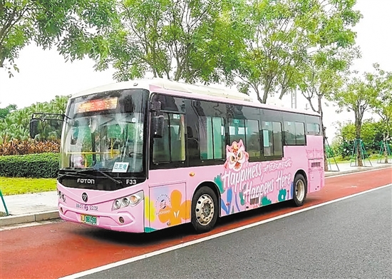 江门三点三下午茶公交旅游专线车身以粉色为主,颜值高又“吸睛”。