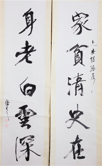文物名称:李铁夫行书“家贫清史在 身老白云深”五言联