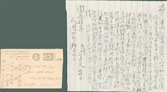 美国旧金山华侨方文仕写给在鹤山沙坪圩的岳父陈以楷的信。