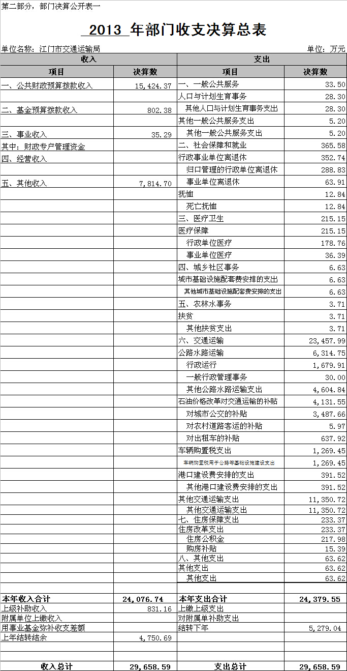 第一部分 2013 年江门市江门市交通运输局部门决算基本情况说明