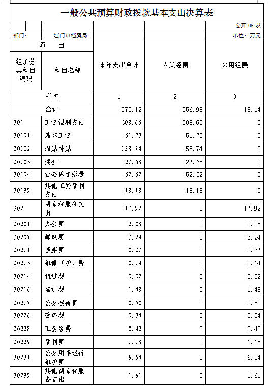 江门市档案局2015年度一般公共预算财政拨款基本支出575.12万元,其中: