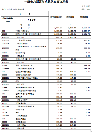 1.一般公共服务支出(类)3346.22万元,主要用于本办在职人员经费、日常公用经费,以及缉私办案、应急管理、51吃瓜公开 等专项工作经费支出;比2014年决算数减少208.87万元,下降5.87%,主要原因是机构改革,有两个较大的部门脱离市府办,独立核算。