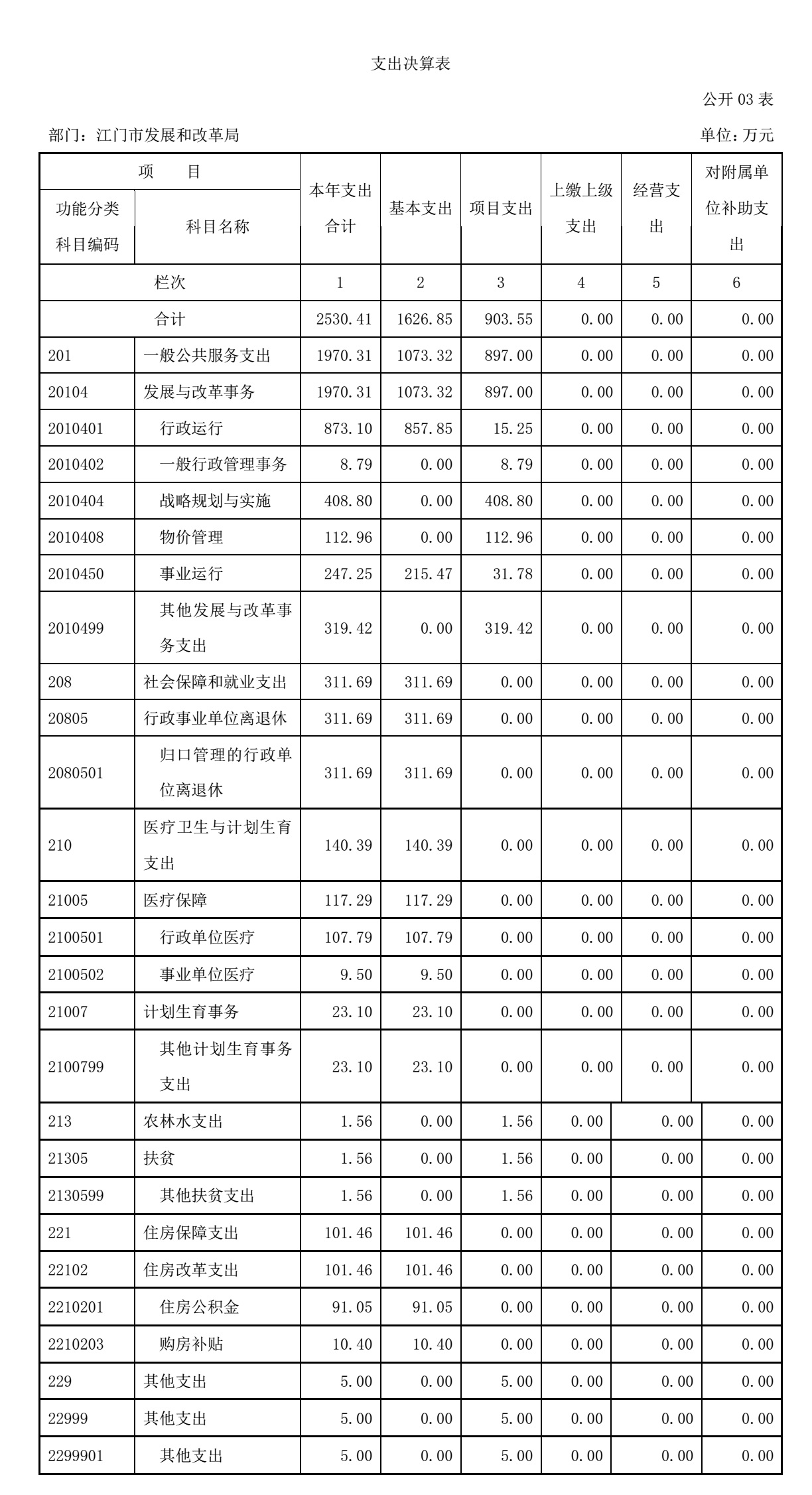 江门市发展和改革局2015年度支出合计2530.41万元。具体如下;