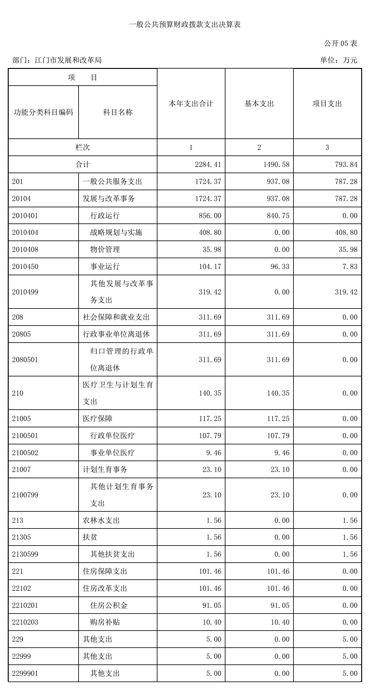 江门市发展和改革局2015年度一般公共预算财政拨款支出2284.41万元,具体情况如下: