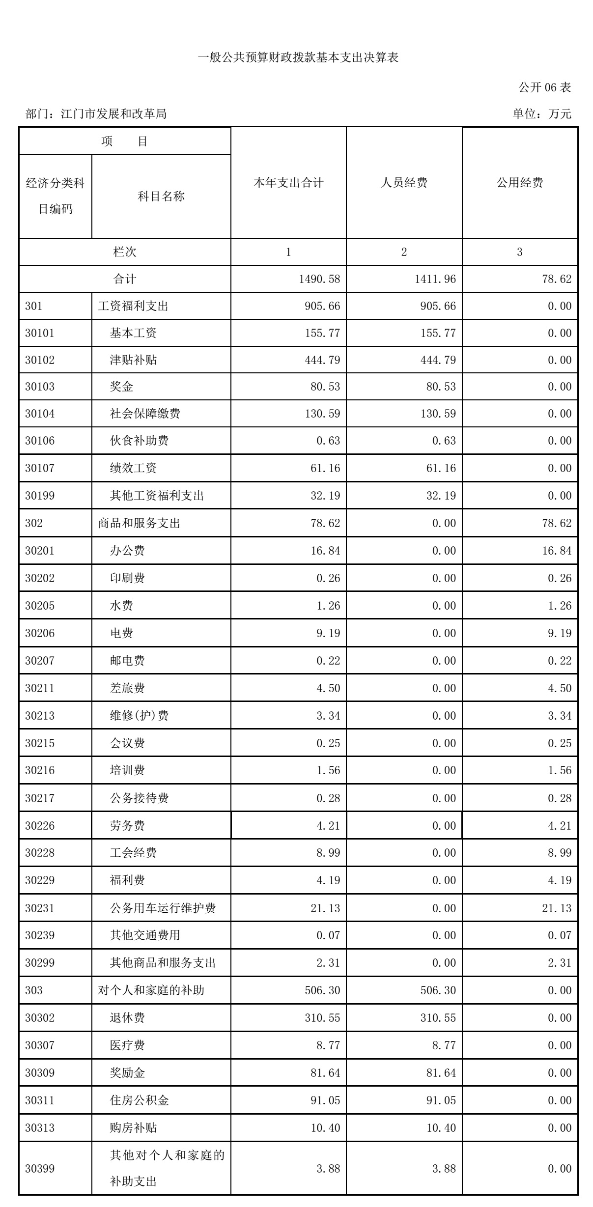 江门市发展和改革局2015年度一般公共预算财政拨款基本支出1490.58万元,其中: