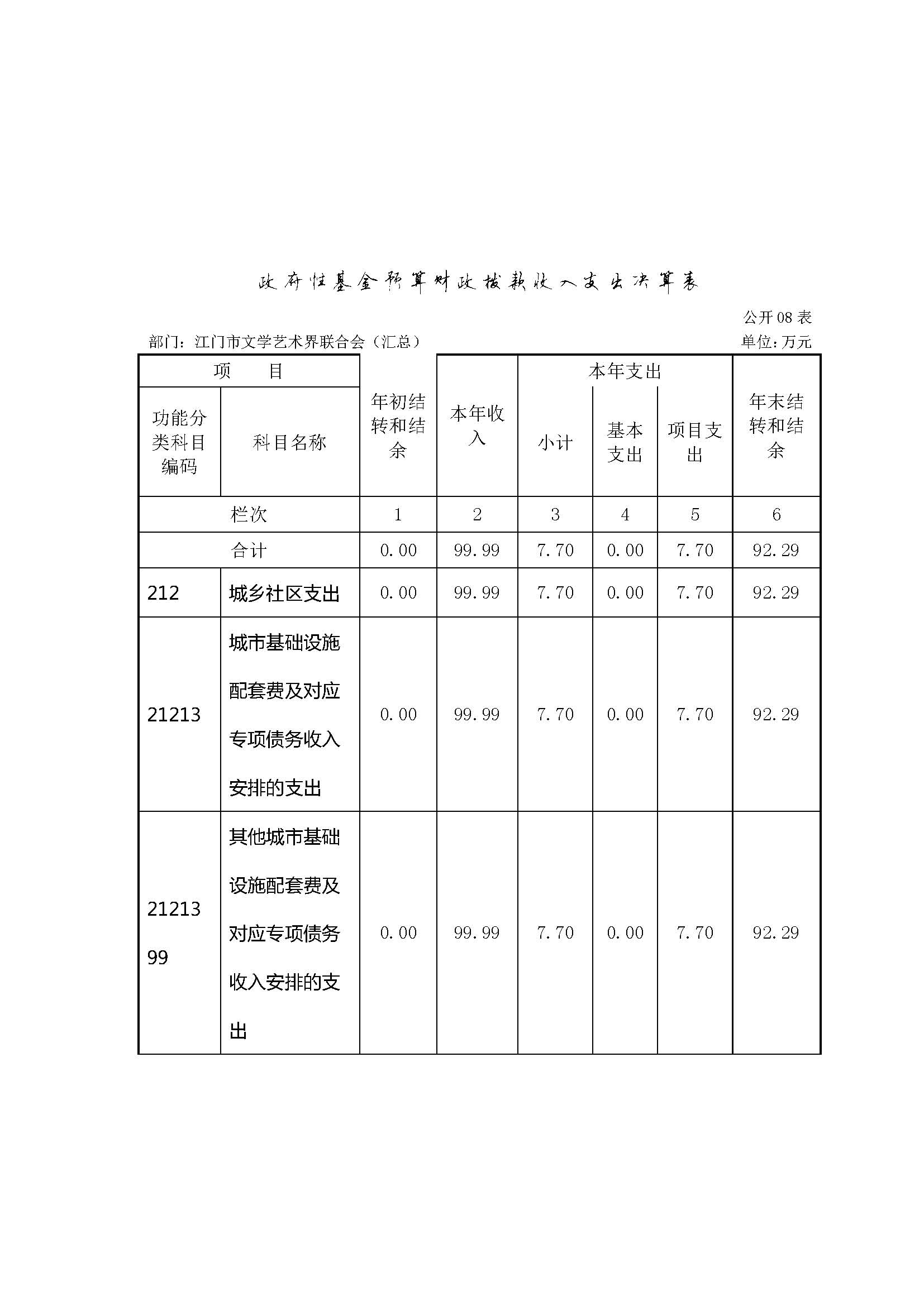 八、政府性基金预算财政拨款收入支出决算表