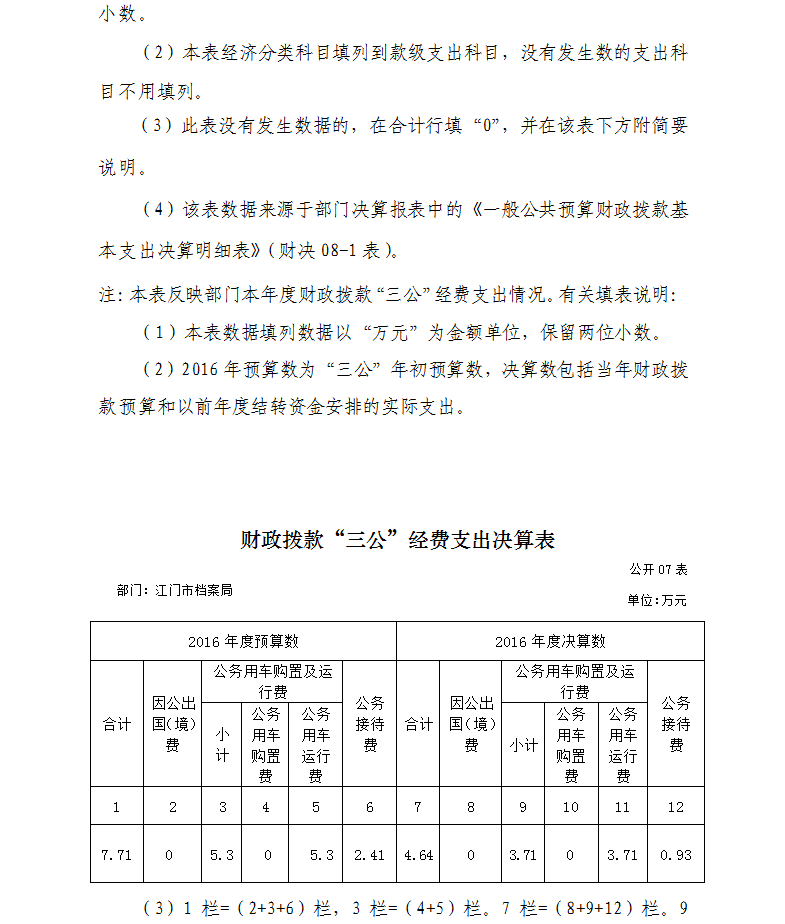 (4)“三公”数据合计为零的,在合计栏填列“0”,并在决算情况说明中予以说明。