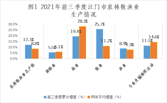 前三季度,江门市农业保持平稳较好发展,全市农林牧渔业总产值343.58亿元,同比增长12.3%。