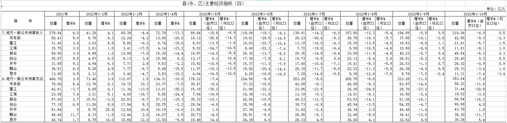 2022年10月县(市、区)主要经济指标(四)
