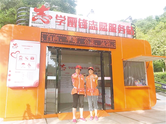 在元宝山公园、五邑华侨博物馆、新会区圭峰山,记者均见到醒目的志愿服务站。在元宝山公园志愿服务站,记者见到门口有醒目牌子,公开志愿服务项目:咨询服务、免费饮水、紧急药品、爱心雨伞、轮椅等,并公布了服务时间和联系电话,墙上有志愿服务管理制度和志愿服务人员登记、服务记录。在五邑华侨博物馆门口的学雷锋志愿服务站,两名志愿者为市民服务,这个站能提供免费讲解、引导问询、残障服务、长者服务等。